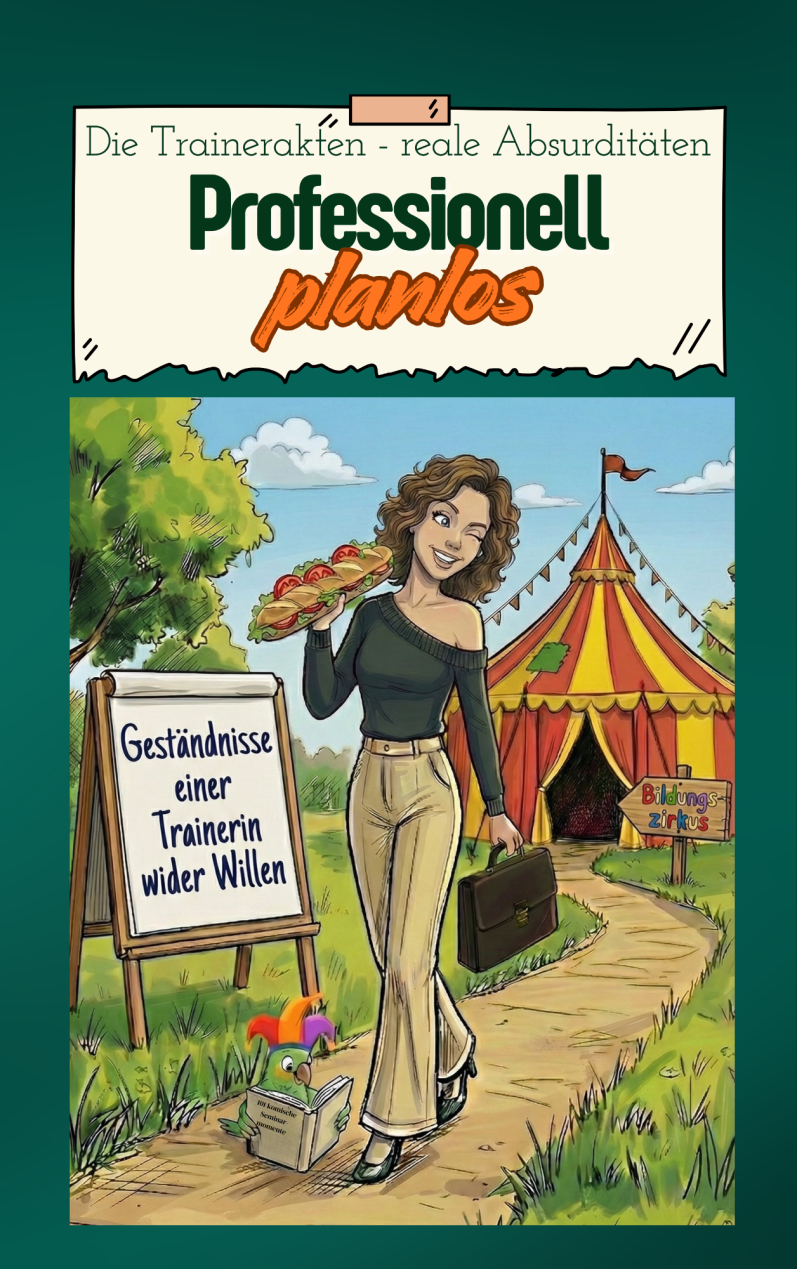 In Professionell planlos teile ich meine Erfahrungen als Trainerin in der Erwachsenenbildung aus beinahe zwei Jahrzehnten – ungeschönt, humorvoll und mit Pannen, die Fachbücher gerne verschweigen.